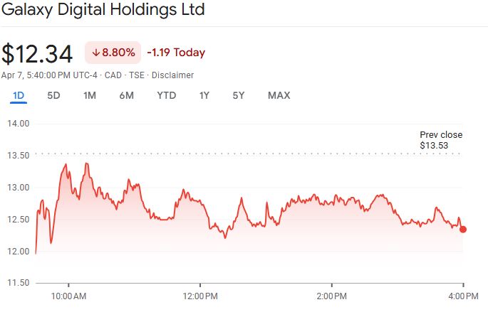 Ціна акцій Galaxy Digital на TSX знизилася на 8% після дзвону, торгуючи на 12,30 доларів Канадських доларів (8,70 долара), повідомляє Google Finance. Акція вперше була перерахована в липні 2015 року та досягла максимуму трохи менше 50 доларів Канадських доларів (35 доларів) 12 листопада 2021 року.