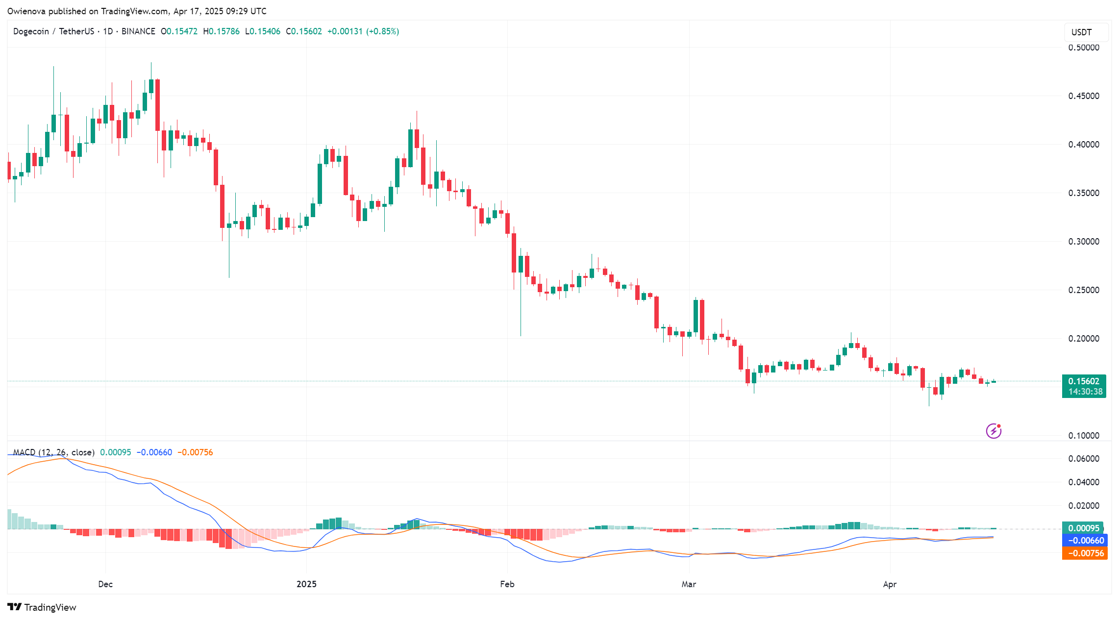 Виходячи з недавнього спостереження C0D3Slayer, після короткого занурення до приблизно 0,15100 доларів ціна різко знизилася з помітним зростанням обсягу торгів, що свідчить про сильні відсотки, що повертаються на нижчі рівні. Цей відскок говорить про те, що торговці прагнули зачиняти Дога зі знижкою, натякаючи на зростання довіри серед биків.