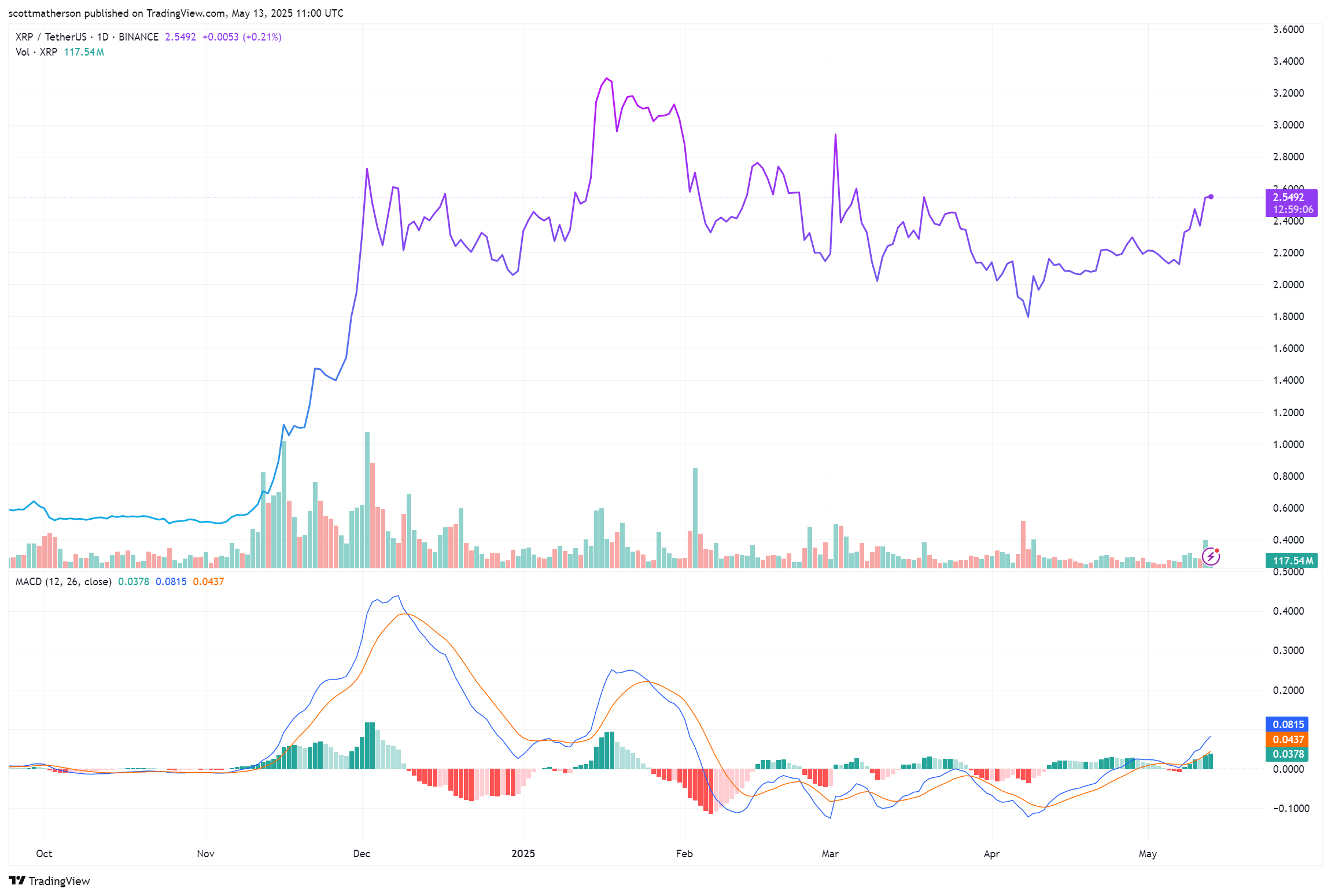 XRPXRP торгується на рівні 2,54 долара на графіку 1D |Джерело: XRPUSDT на TradingView.com