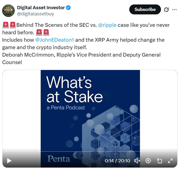 Дебора Маккріммон, віце -президент Ripple та заступник генерального радника, заявила в Пента -подкаст у понеділок в епізоді, що зусилля Дітона та армія XRP дали суду видимість, що справа “впливає на багато людей”, а не лише Ріппл.