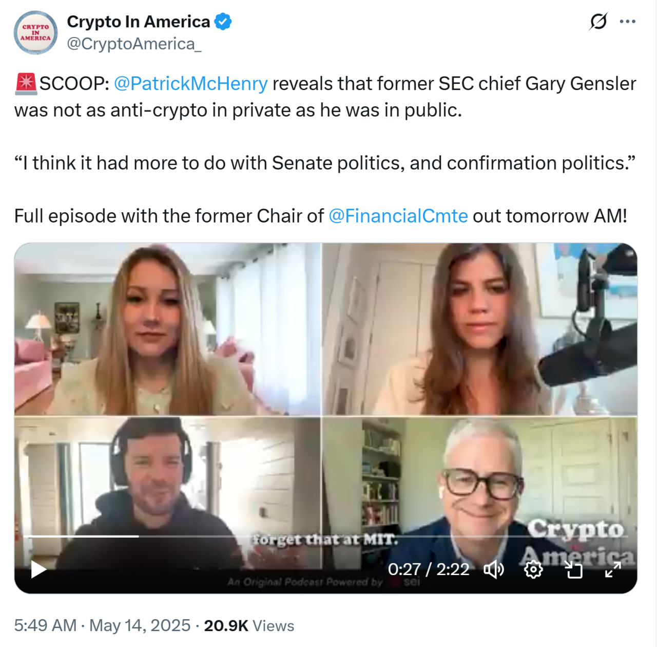 Макенрі зазначив, що Генслер “побачив цінність цифрових активів” і визнав потенціал технології blockchain під час свого перебування в Массачусетському технологічному інституті.