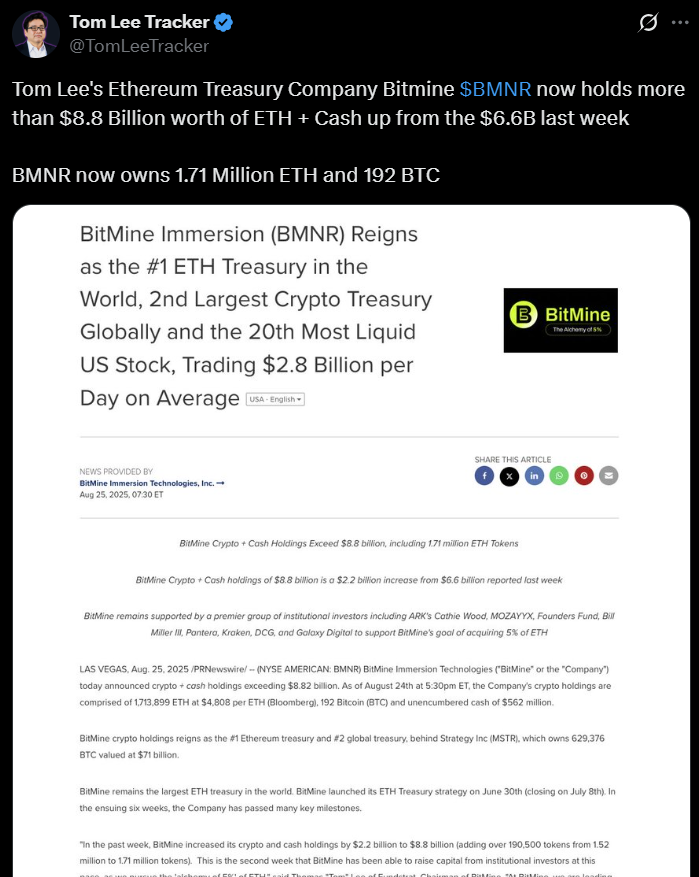 Ethzilla не самотня в прийнятті криптовалюти як активу балансу. Компанії як всередині, так і поза межами цифрового ака-акту-включаючи Bitmine Immersion Technologies, Ether Machine, Sharplink Gaming, Bit Digital та Ether Capital Corp.-всі стратегічні придбання ефіру.