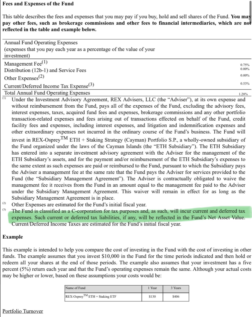 Акції REX пояснили в заяві, що фонд “класифікується як С-корпорація C для цілей оподаткування, і, як такий, несе поточні та відкладені податкові витрати. Такі поточні або відкладені податкові зобов’язання, якщо такі є, відображатимуться у чистому вартості активів фонду”.