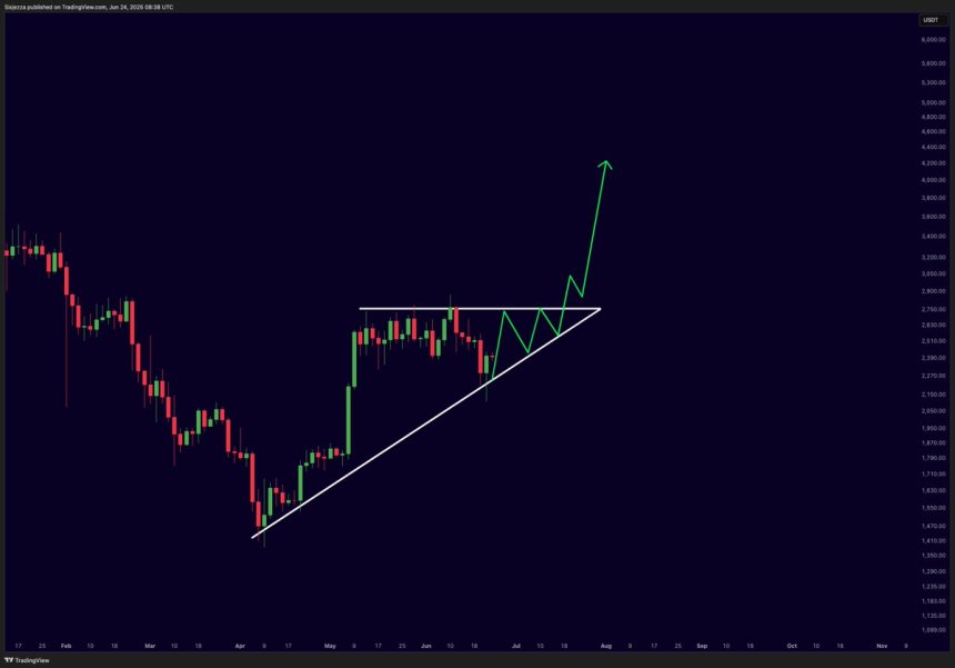Цей нещодавній відскок повернув Ethereum у критичну технічну зону, де бики знову намагаються повернути контроль. Провівши більшу частину травня та червня в бічному діапазоні, ETH демонструє ознаки оновленої сили, що підживлює оптимізм, що наступний вирішальний хід може бути догори.