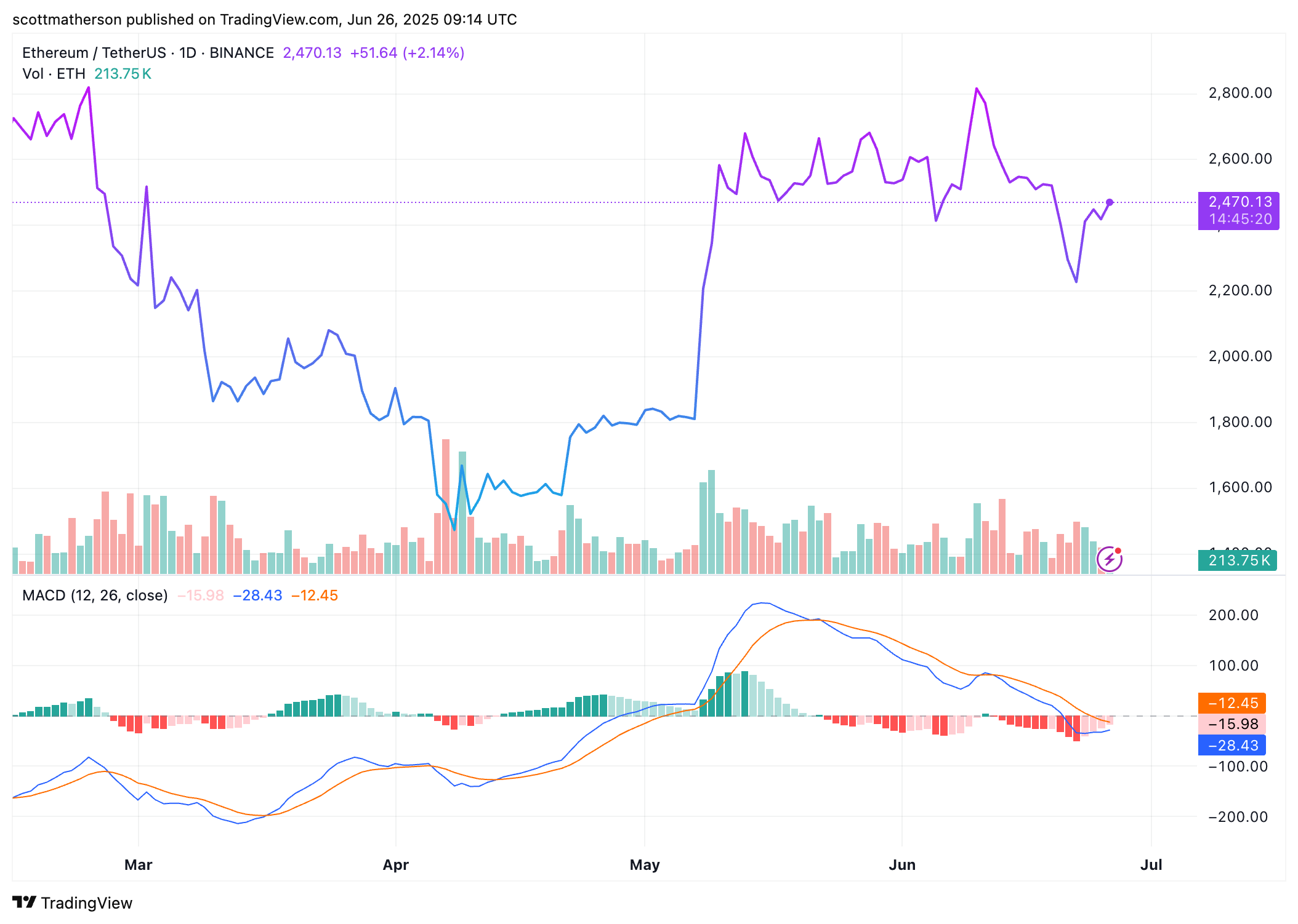 Торгівля ETH на рівні 2470 доларів на 1D -діаграмі |Джерело: Ethusdt на TradingView.com