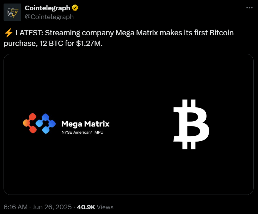 Незважаючи на це, Mega Matrix не самотня в тому, щоб шукати цифрові активи як стратегію балансу. Багато менших фірм або додавали криптовалюти до своїх скарбників, або повністю обернулися до цифрових акцій.