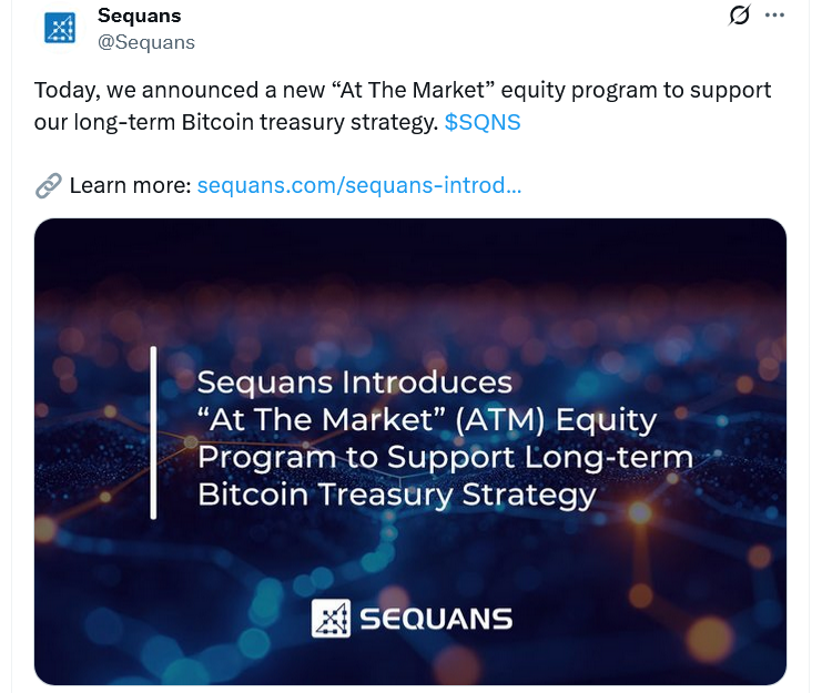 Sequans вперше оприлюднив свій план використання біткойна як основного казначейського активу 23 червня, приєднавшись до зростаючої тенденції компаній, що публічно торгуються, що приймають криптовалюту як інфляційну хедж і магазин вартості. Раніше він заявив, що прагне зібрати 100 000 біткойна до 2030 року.