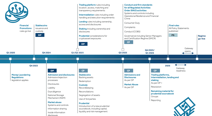 Згідно з FCA, очікується, що ширший режим криптовалюти набуде чинності в жовтні 2027 року, але компанії зможуть почати подавати заявки на авторизацію вже у вересні 2026 року.