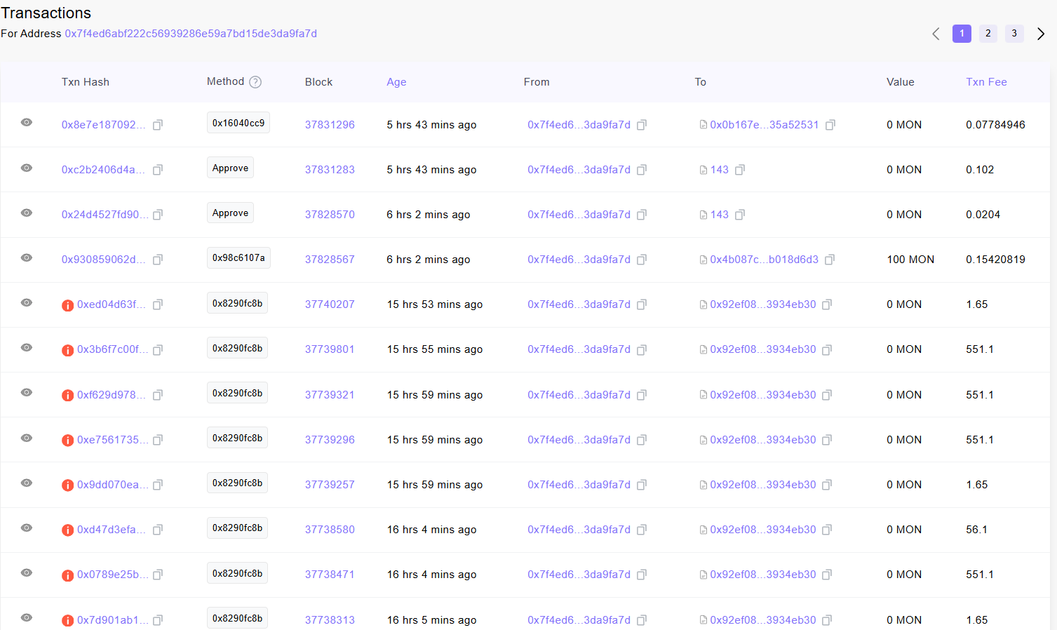 Судячи з моделей транзакцій, користувач, який стоїть за гаманцем, ймовірно, відправив сотні транзакцій за короткий час, ймовірно, за допомогою сценарію, але не помітив, що перші транзакції стали невдалими.