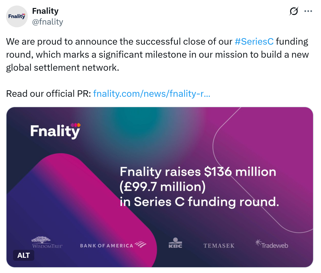 У 2023 році FNALILITY зібрала 95 мільйонів доларів у раунді фінансування на чолі з Goldman Sachs та BNP Paribas, за участю Euroclear, DTCC, MisdomTree та існуючого бекерного Номури.