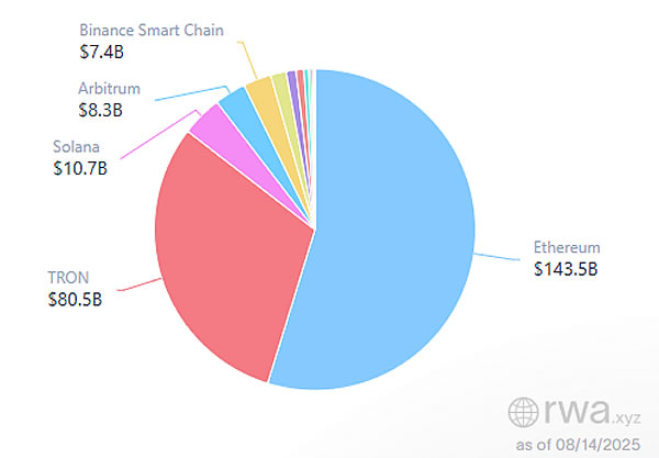 Наразі мережа Ethereum має командуючу частку ринку 55% в 25 мільярдів доларів в галузі токенізації реального світу (RWA), повідомляє RWA.xyz.