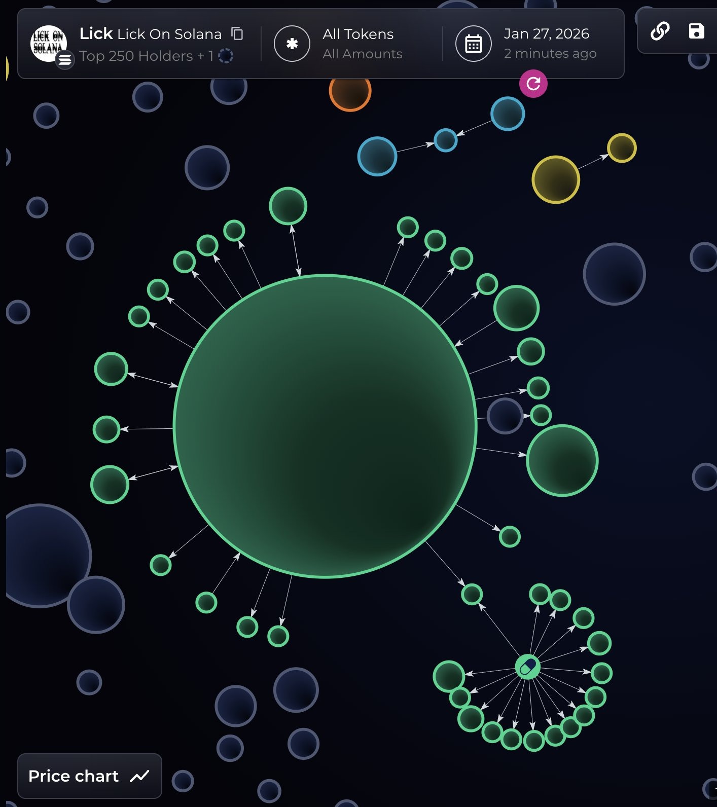 За даними платформи візуалізації даних блокчейну Bubblemaps, розробник LICK мав 40% від загальної пропозиції на момент запуску, рівень концентрації, який часто розглядається як червоний прапорець на ранніх стадіях запуску токенів.
