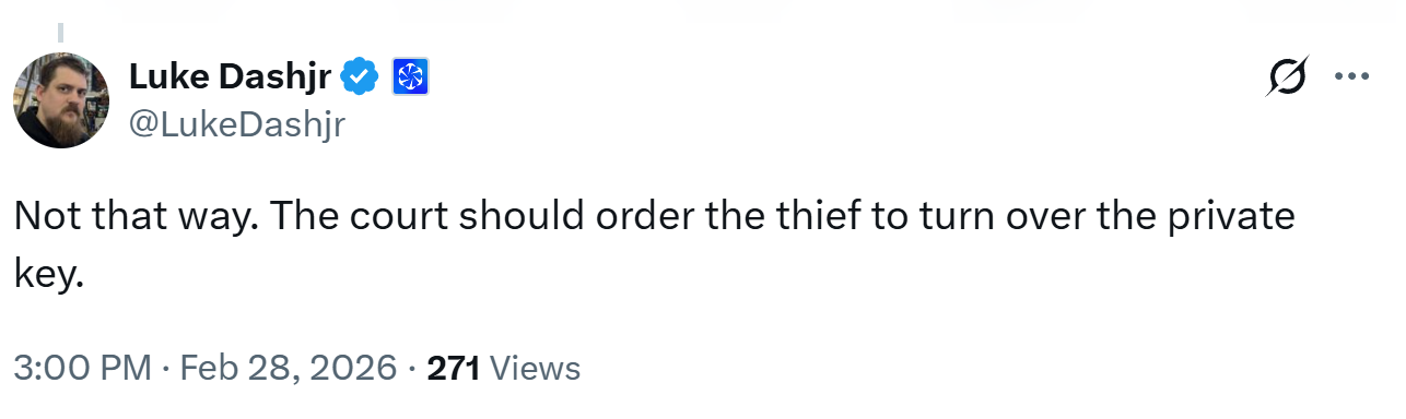 «Я кредитор, і мені виплатили те небагато, що залишилося від мого біткойна після банкрутства — я повернув приблизно 15%… Я б підтримав отримання судового наказу про вимогу цих монет».