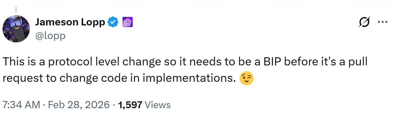 “Я хочу бути відвертим: це хардфорк. Він робить раніше недійсну транзакцію дійсною. Усі вузли потребуватимуть оновлення до досягнення висоти активації. Я не намагаюся замаскувати цей факт чи промовити його як щось інше”, – додав він.