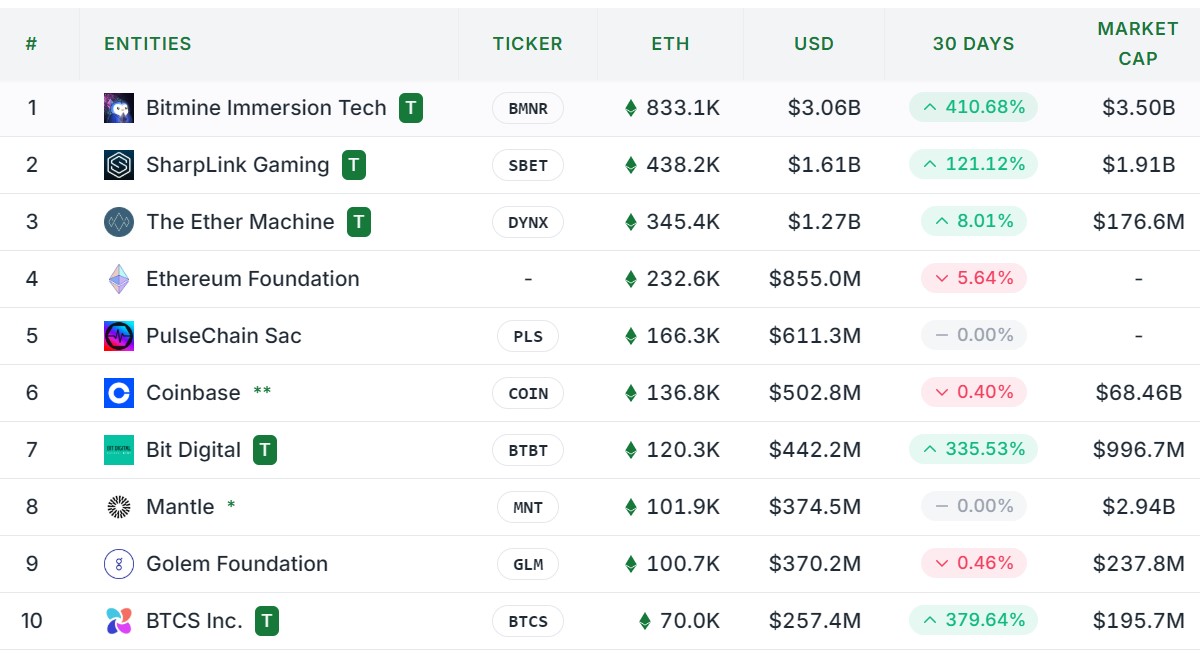 Відповідно до стратегічного резерву ETH Tracker Data, машина Ether займає третє місце в ETH Holdings з 345 000 ETH (1,27 мільярда доларів).