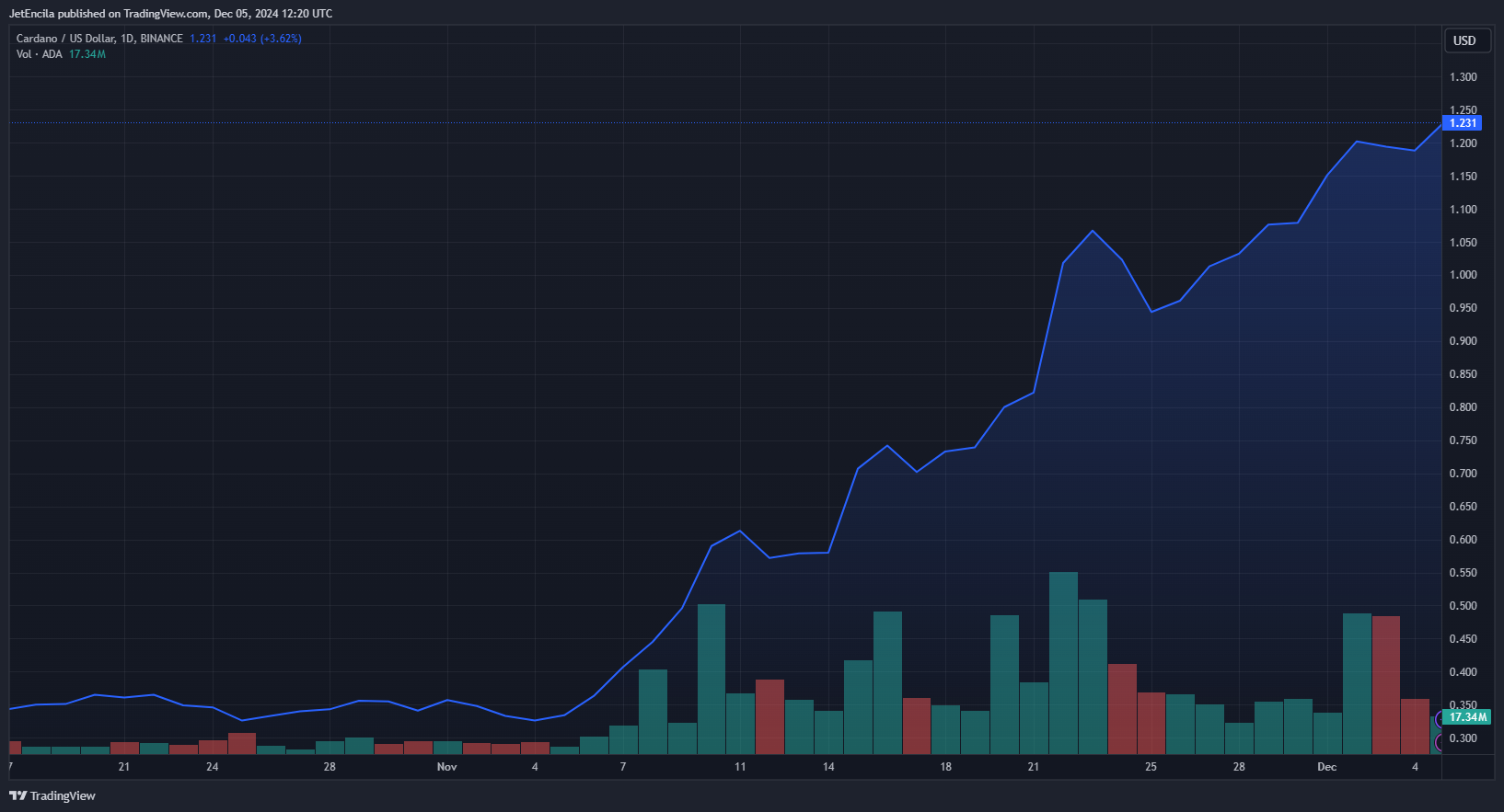 Зараз Cardano торгується на рівні 1,23 долара. Діаграма: TradingView