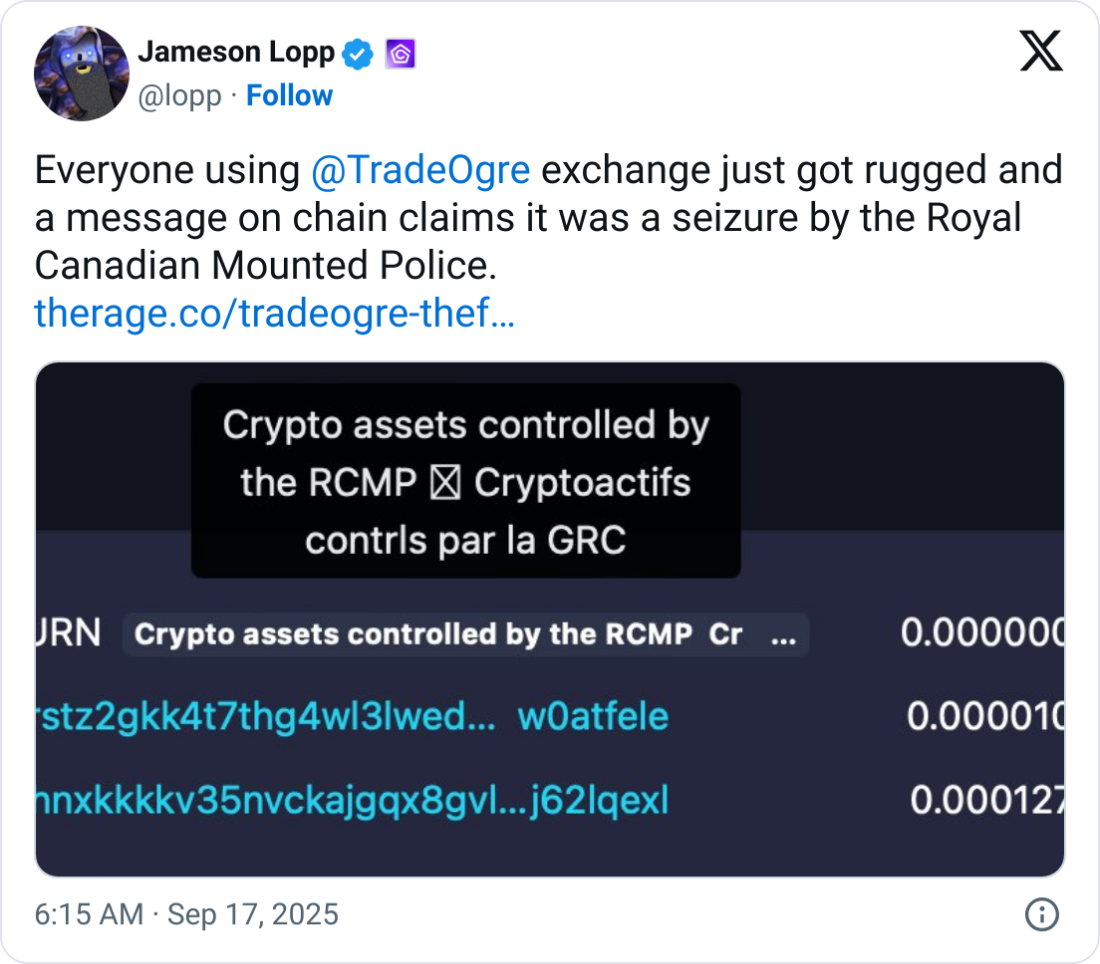Повідомлення RCMP-це перше офіційне оновлення про обмін, яке місяцями офлайн і мовчазне, що змушує багатьох користувачів відновити адвокацію для інших, щоб самообробувати свої активи.