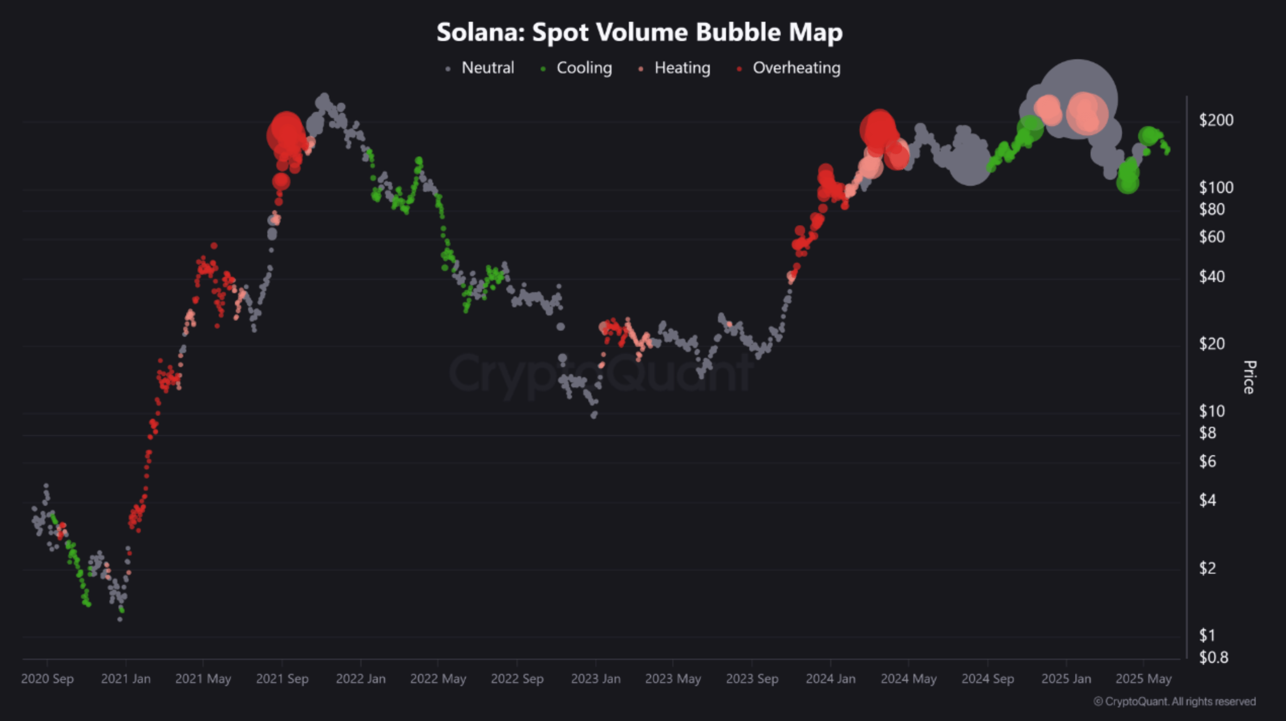 Згідно з нещодавньою криптохитною поштою Quicktake від учасника Бурккессеці, Сол в даний час проходить фазу охолодження як на плямах, так і на ф’ючерсних бульбашкових картах. Аналітик поділився наступною діаграмою, щоб виділити цей період охолодження.