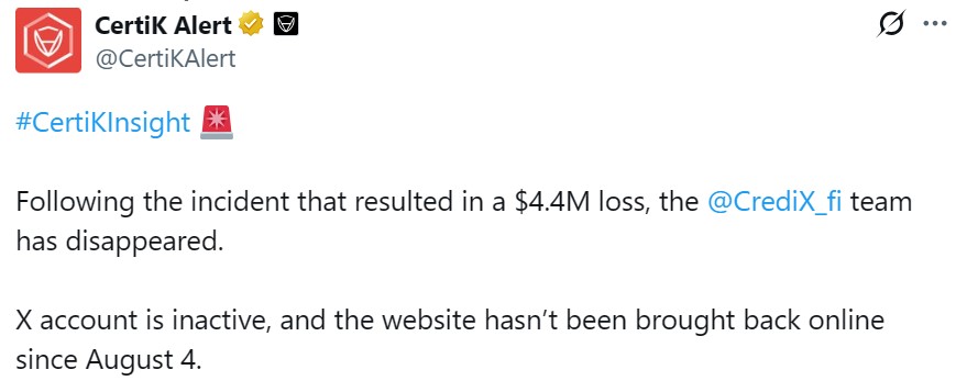 Команда, що стоїть за децентралізованими фінансами (Defi) протоколу Credix Finance, схоже, зникла після експлуатації 4,5 мільйонів доларів, яка викинула кошти з платформи, викликаючи занепокоєння підозрюваної афери виходу.