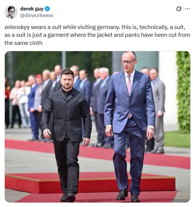 Тим часом, письменник канадської чоловічої моди та коментатор Дерек Гай, також відомий як хлопець з чоловічого одягу на X, не зробив багато для вирішення суперечки, кажучи 26 червня, він вважає, що наряд Зеленського – це “і костюм, а не костюм”.