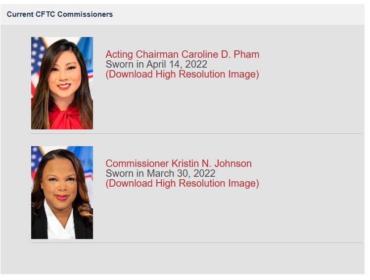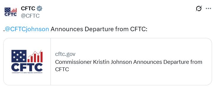 Колишній голова CFTC Ростін Беннам пішов у відставку 20 січня, коли адміністрація Трампа взяла на себе посаду, а Літній Мерсінгер та Крісті Голдсміт Ромеро відступили в травні.