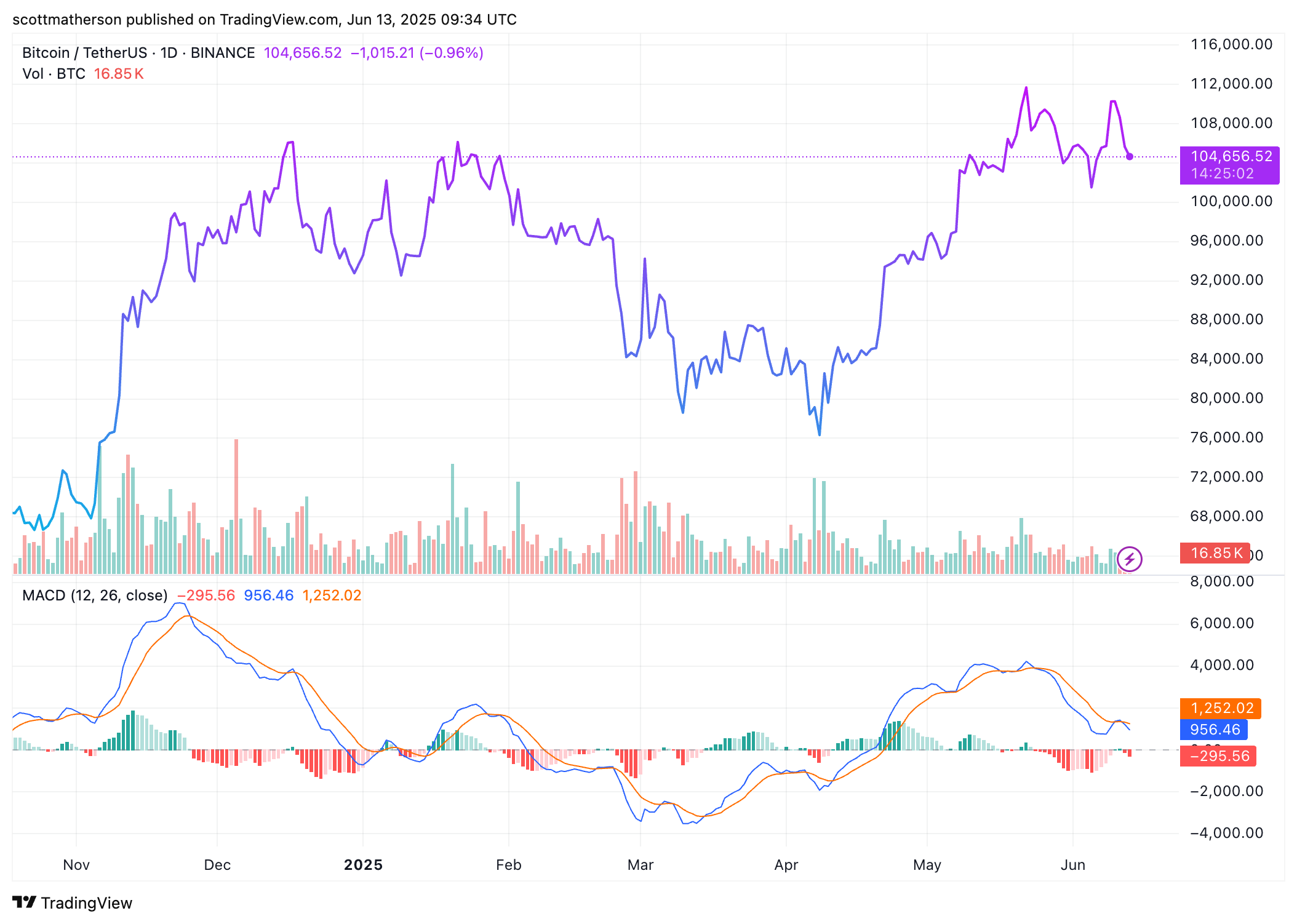 БіткойнBTC Trading на рівні 104 656 доларів на графіку 1D |Джерело: BTCUSDT на TradingView.com