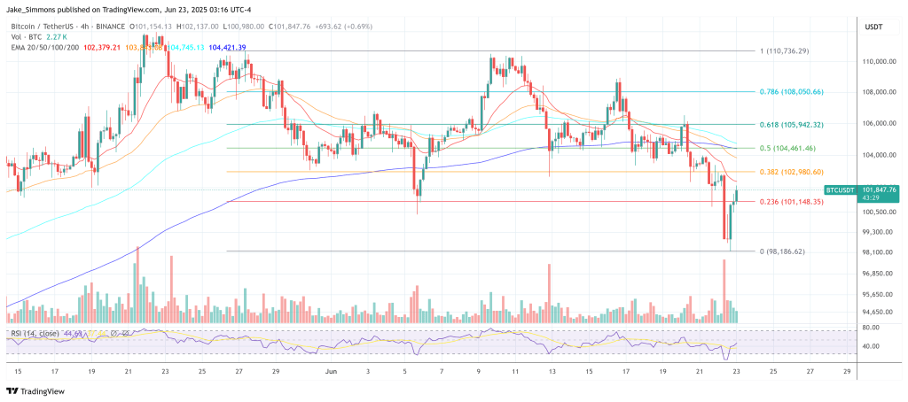 Bitcoin відновлюється назад вище 100 000 доларів, 4-годинна діаграма |Джерело: BTCUSDT на TradingView.com