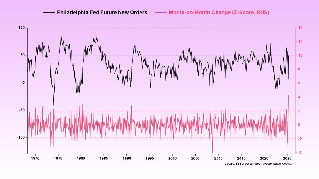 Безпрецедентний сплеск у опитуванні федеральних резервів Філадельфії у виробництві підприємства з виробництва бізнесу привернуло глобальні ринки ризику та надавши торговці активами криптовалют свого найяскравішого макро каталізатора року. Майбутній індекс дифузії нових замовлень підскочив на сорок плюс, що рухається, що Жульєн Біттел, керівник макро-досліджень глобального макро-інвестора (GMI), який називається “буквально” історичним.