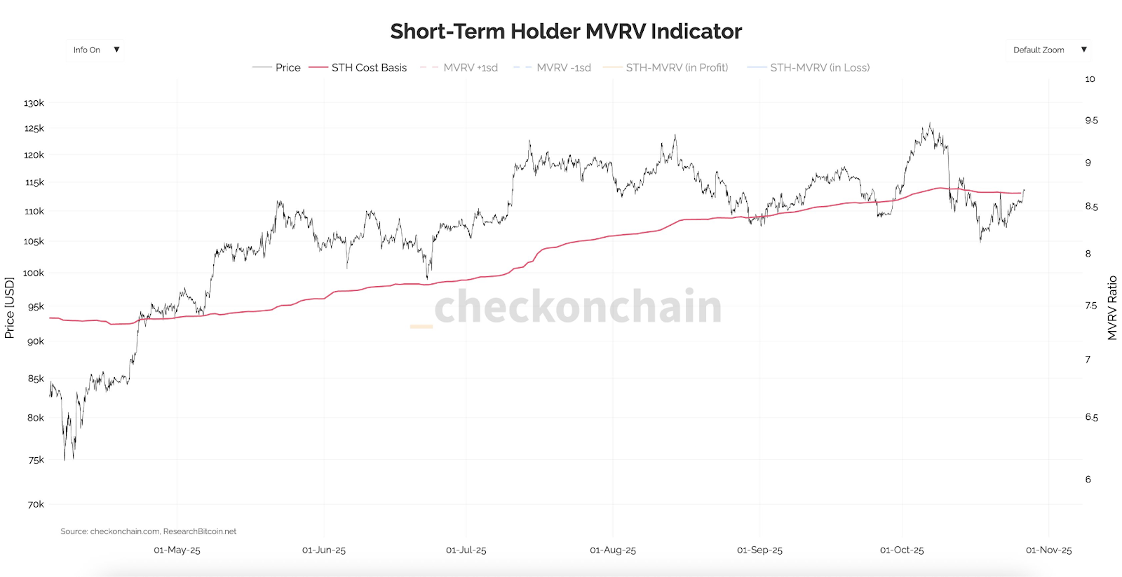 Ознака деескалації допомогла біткойну відновитися вище базової вартості короткострокового власника (STH) у розмірі близько 114 000 доларів США вперше після нових погроз Трампа тарифами, які призвели до обвалу ринку криптовалюти на 19 мільярдів доларів на початку жовтня.
