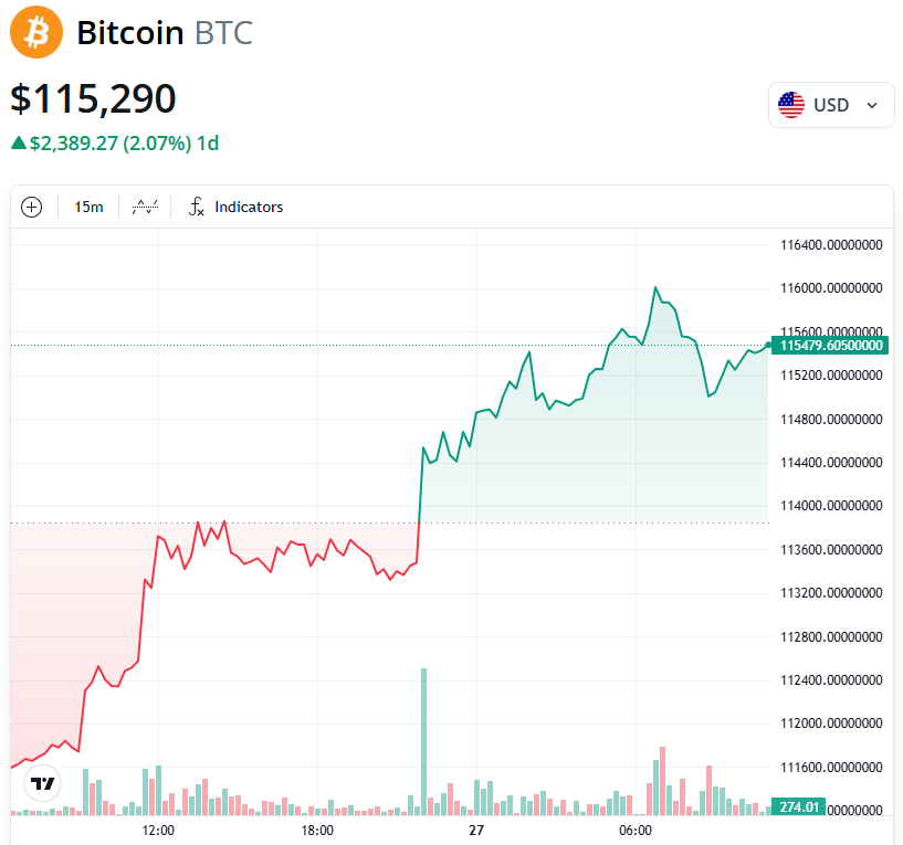У понеділок біткойн (BTC) ненадовго відновився вище двотижневого максимуму в 116 400 доларів США завдяки очікуванням інвесторів щодо двох важливих макроекономічних каталізаторів цього тижня: майбутнього рішення щодо процентної ставки Федерального комітету з відкритих ринків (FOMC) у середу та потенційної торговельної угоди між США та Китаєм, яка може відбутися вже у четвер.