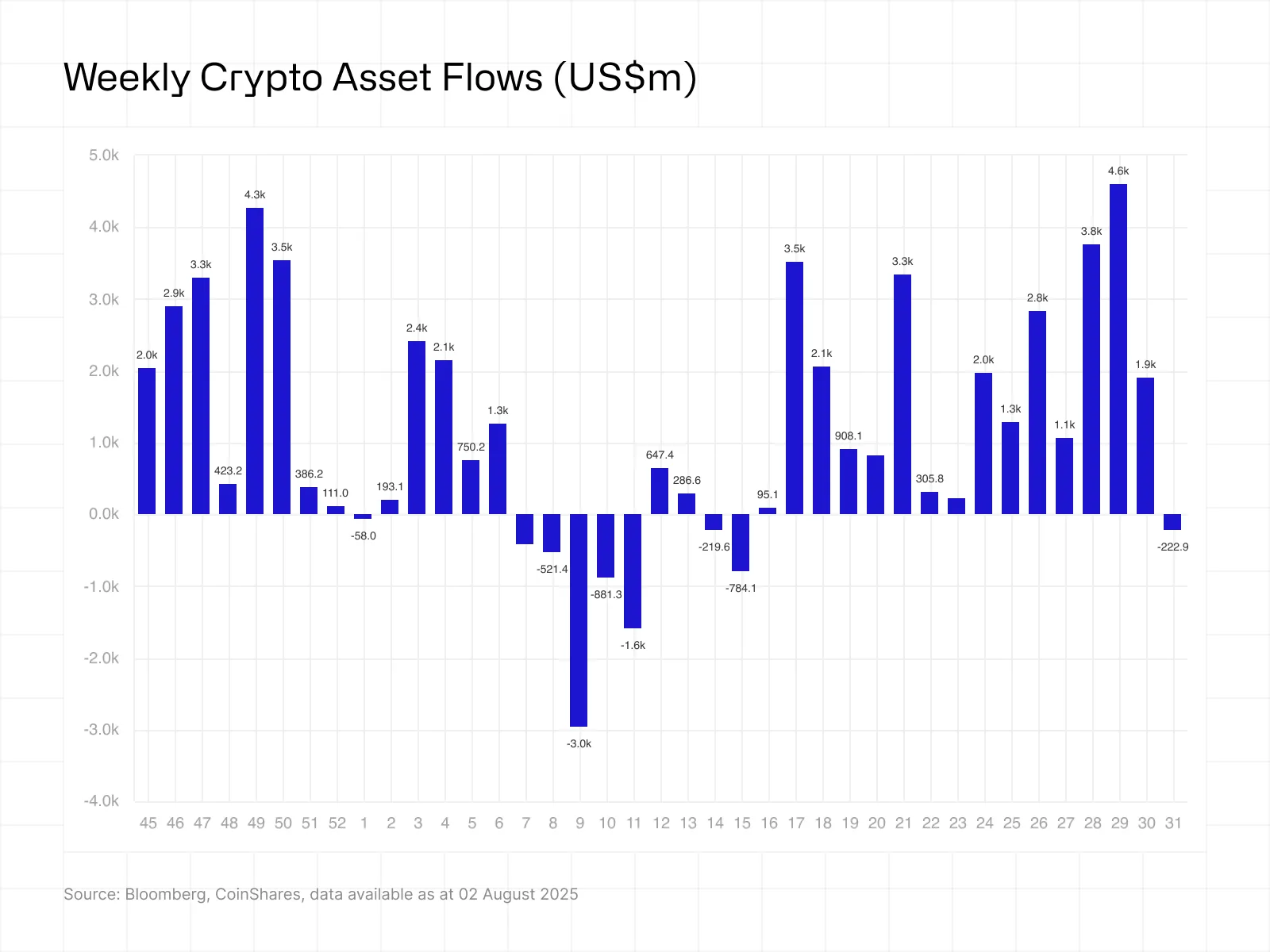 Глобальні продукти з обміну криптовалютами (ETPS) минулого тижня відбулися на суму 223 мільйони доларів, згідно з останнім звітом фірми з управління криптовалютами Coinshares, опублікованого в понеділок.