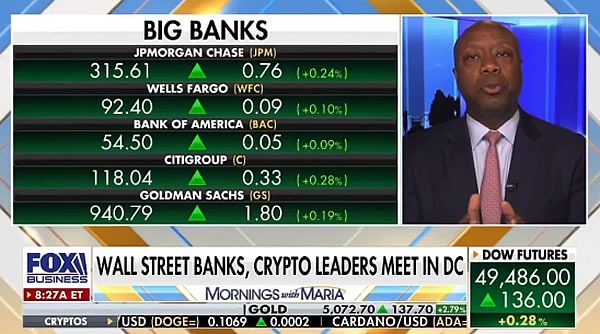 Голова банківського комітету Сенату Тім Скотт сказав Fox News у середу, що дозволити криптовалютним компаніям виплачувати винагороди – це добре, але вони не можуть рекламувати так, ніби вони банк.