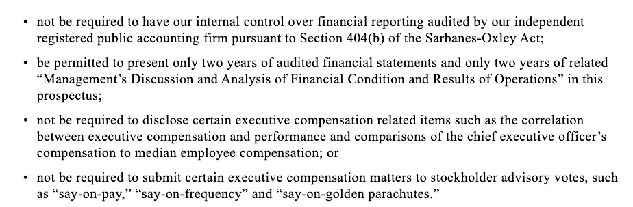 У поданні Близнюки підкреслили, що він подає IPO як “компанію, що розвивається”, яка, згідно з Федеральними законами про цінні папери США, робить його підпорядкованим зменшеним вимогам звітності про публічну компанію.