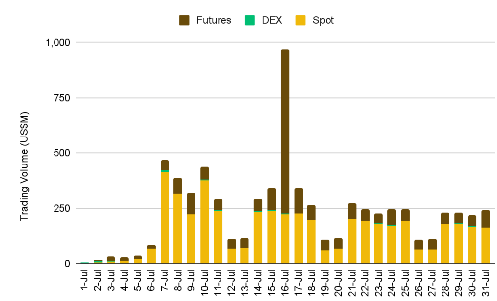 Блокчейн-адреси, що містять токенізовані акції, також зросли до понад 90 000 у липні з 1600 у червні, що свідчить про зростаючий попит інвесторів на токенізовані акції.