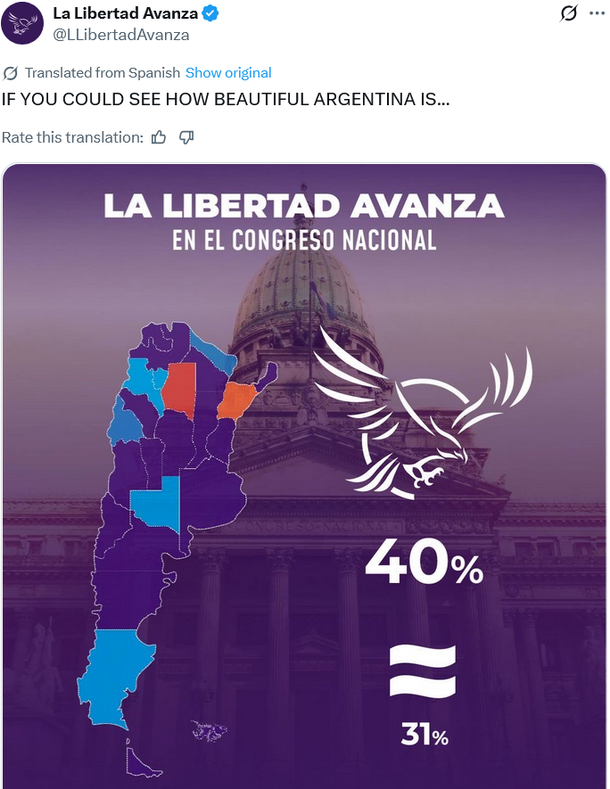 Хоча пероністська партія залишається більшістю в Конгресі, результат підтверджує, що Мілеї знову буде фаворитом на наступних президентських виборах в Аргентині в жовтні 2027 року.