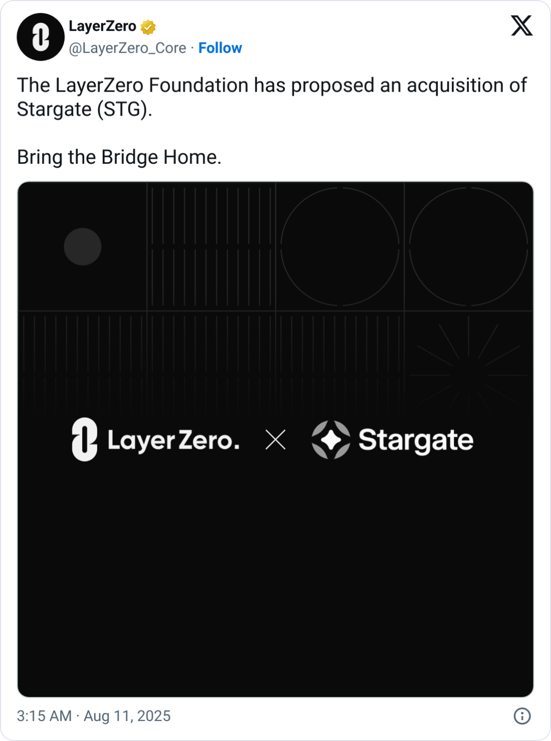 Він сказав, що пропозиція “допоможе Stargate виконувати свою амбітну дорожню карту, створюючи єдиний стек, який може прийняти будь -хто, що інтегрується в екосистему [Layerzero]”.