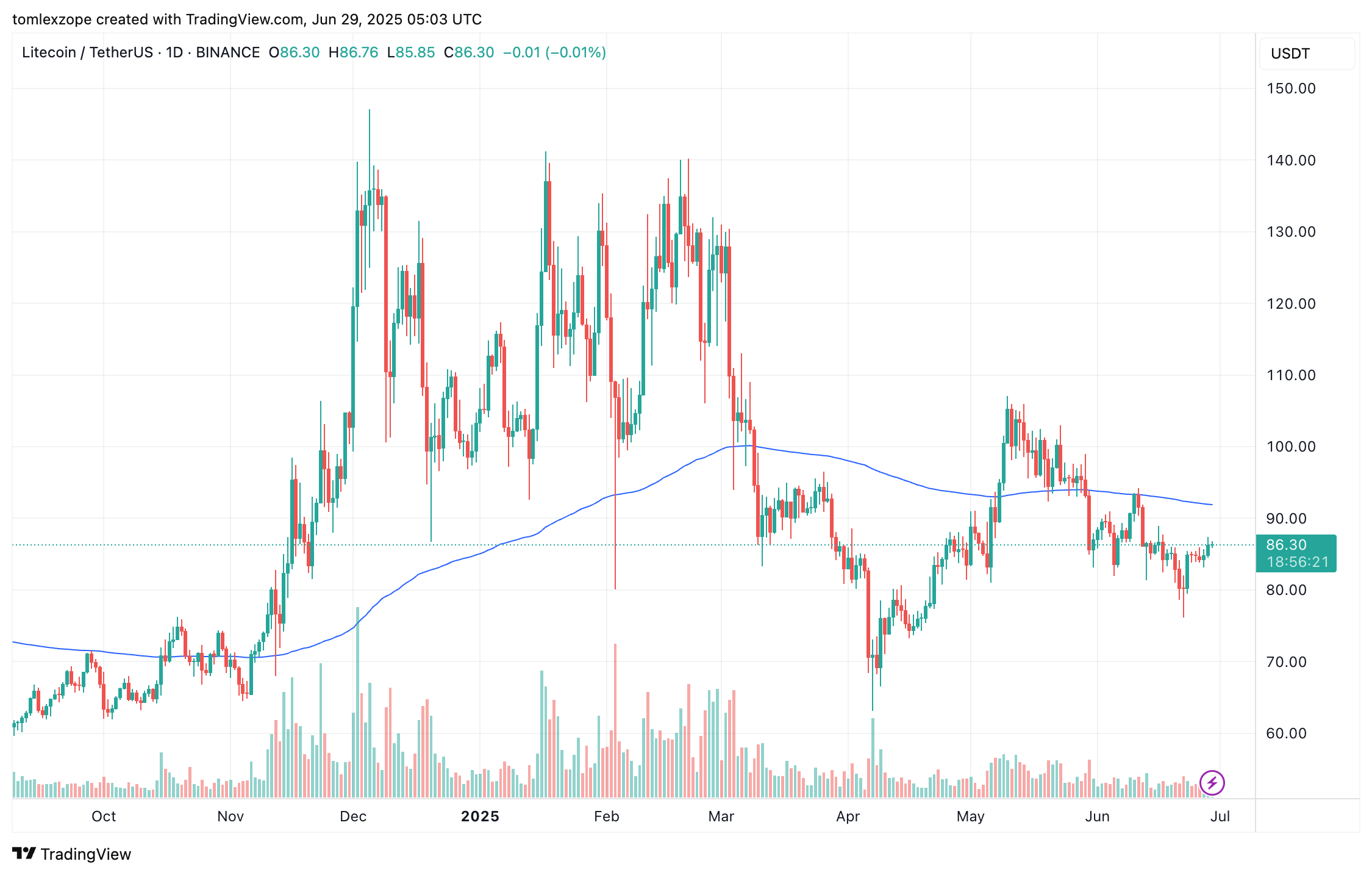 ЛітаЦіна LTC на щоденні часові рамки |Джерело: LTCUSDT Chart на TradingView