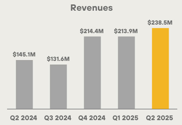 Доходи Mara Holdings збільшилися на 64% у річному обчисленні до 238 мільйонів доларів, що перевищує 145 мільйонів доларів у 2 кварталі 2024 року, а також отримував від своїх доходів на 214 мільйони доларів у першому кварталі 2025 року, повідомила компанія у вівторок.