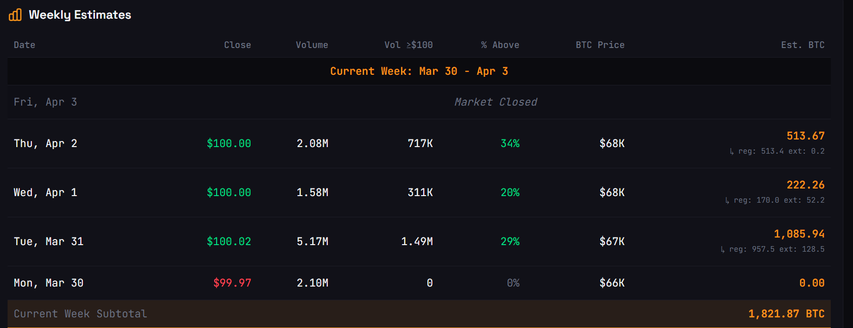 За оцінками STRC. LIVE, Strategy може бути встановлено на покупку щонайменше 1821 BTC на основі коштів, зібраних за тиждень, що закінчився 3 квітня.