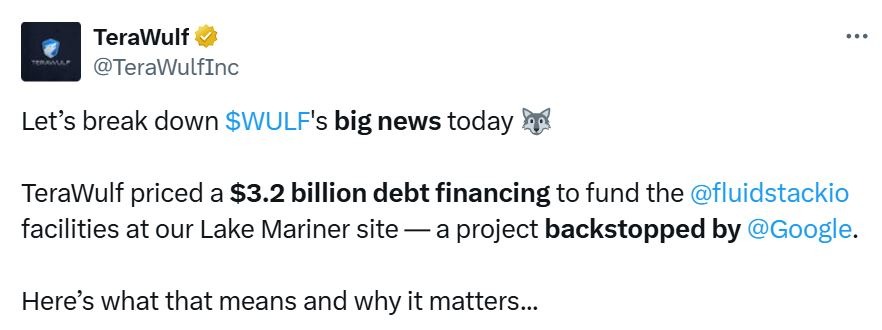 Інший майнер TeraWulf також оголосив про забезпечення старших зобов’язань на суму 3,2 мільярда доларів США, пропонуючи профінансувати частину розширення свого центру обробки даних у кампусі Lake Mariner у Баркері, штат Нью-Йорк.