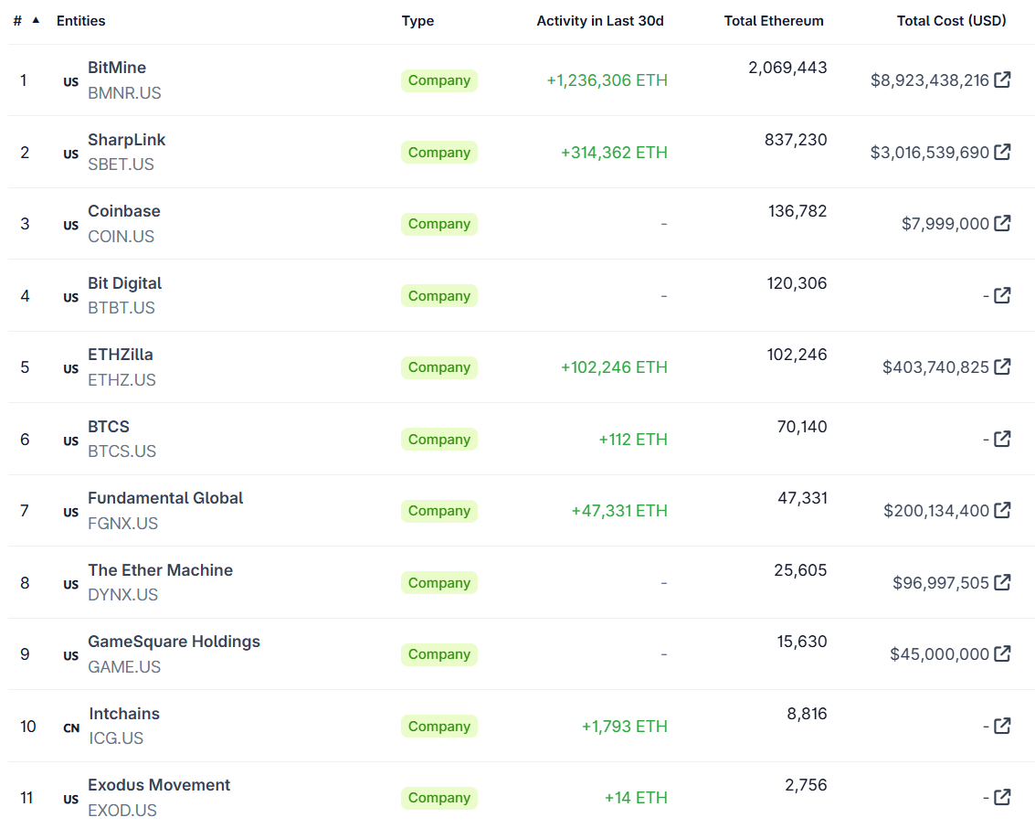 Зараз державні компанії мають понад 1 мільйон BTC колективно, а деякі казначейства почали розширюватися в ефір (ETH), Solana (SOL) та інших альткойнів.