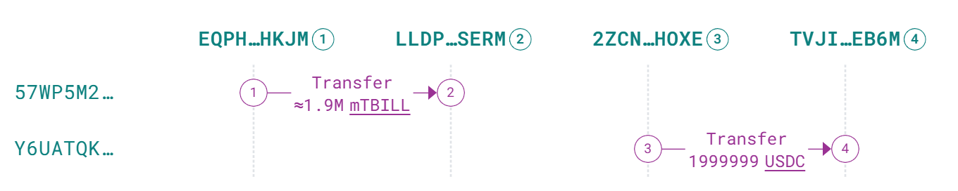 Перший атомний своп був виконаний третьою стороною на блокчейні Algorand 27 травня. У рамках транзакції на MTBills було обмінено 2 мільйони доларів США (USDC).