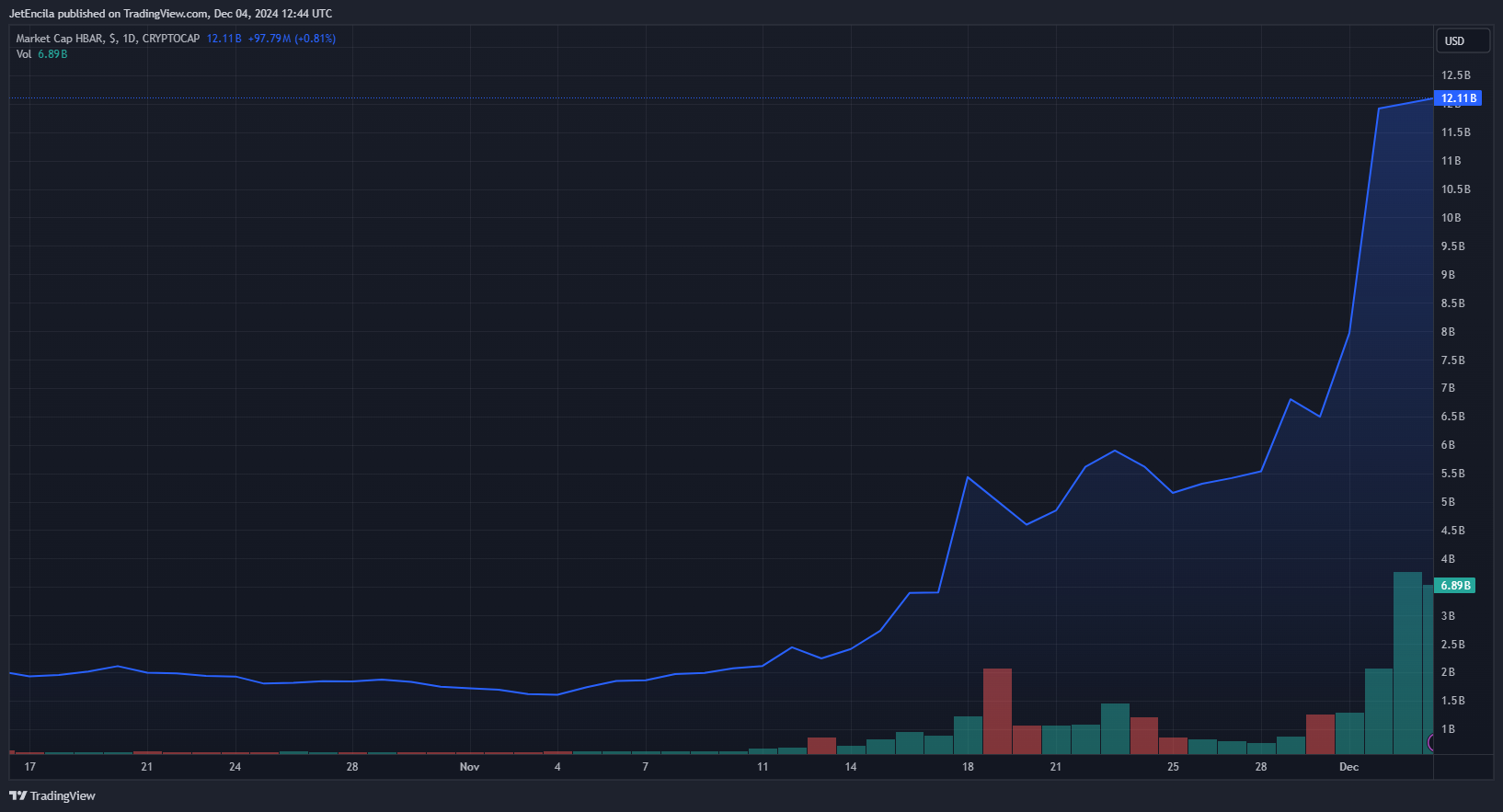 Ринкова капіталізація HBAR зараз становить 12,1 мільярда доларів. Діаграма: TradingView