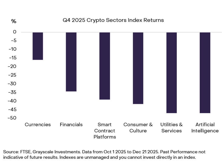 Незважаючи на те, що підсектор валют знизився більш ніж на 15% протягом кварталу, він все одно значно випередив інші сегменти, включаючи фінанси, платформи смарт-контрактів, споживання та культуру, а також штучний інтелект.