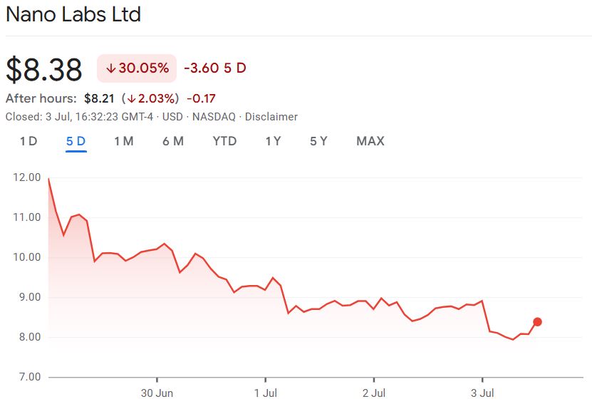 Незважаючи на те, що ціна акцій Nano Labs зросла на понад 106%, коли вона вперше оголосила про план випуску 500 мільйонів доларів конвертованих нот для фінансування казначейства BNB, остання покупка не вразила інвесторів.