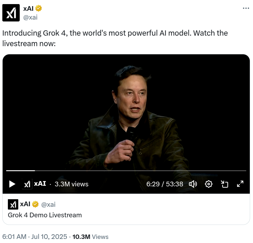 Команда XAI розкрила свої останні плани розвитку після запуску Grok 4, оскільки засновник Елон Маск поділився сміливими прогнозами щодо штучного інтелекту.