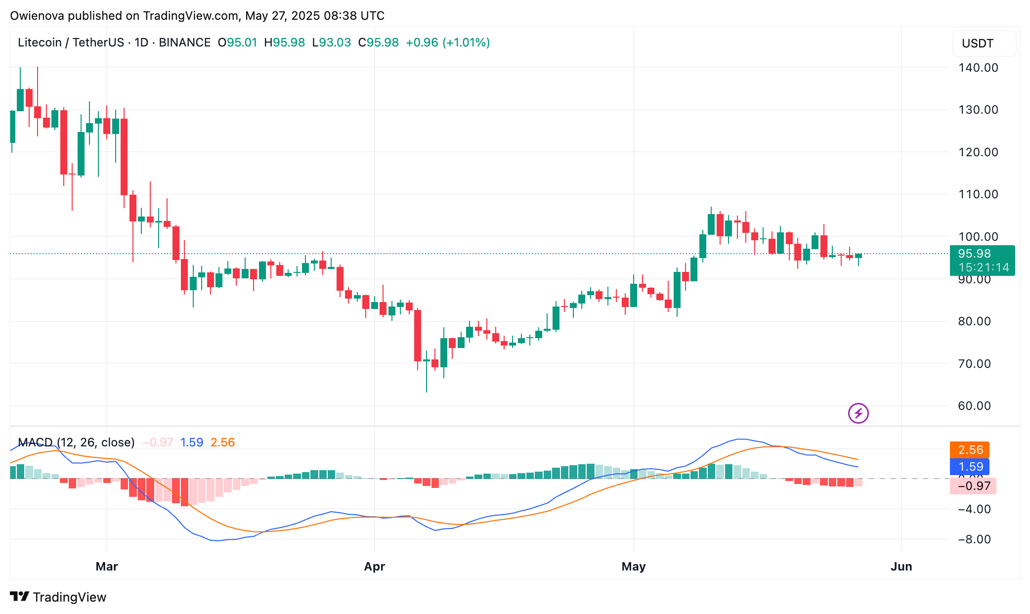 ЛітаТоргівля LTC на рівні 95 доларів на 1D -діаграмі |Джерело: LTCUSDT на TradingView.com