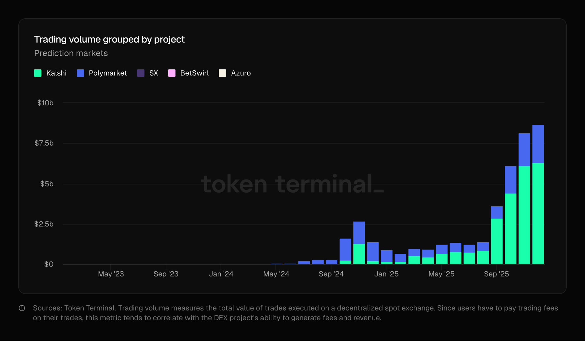 Ринки прогнозів набули популярності протягом останнього року та пропонують ставки на низку подій, але ринки на спорт є особливим джерелом прибутку. Згідно з дослідженнями Foresight Ventures, до 90% обсягу Kalshi було пов’язано зі спортом.