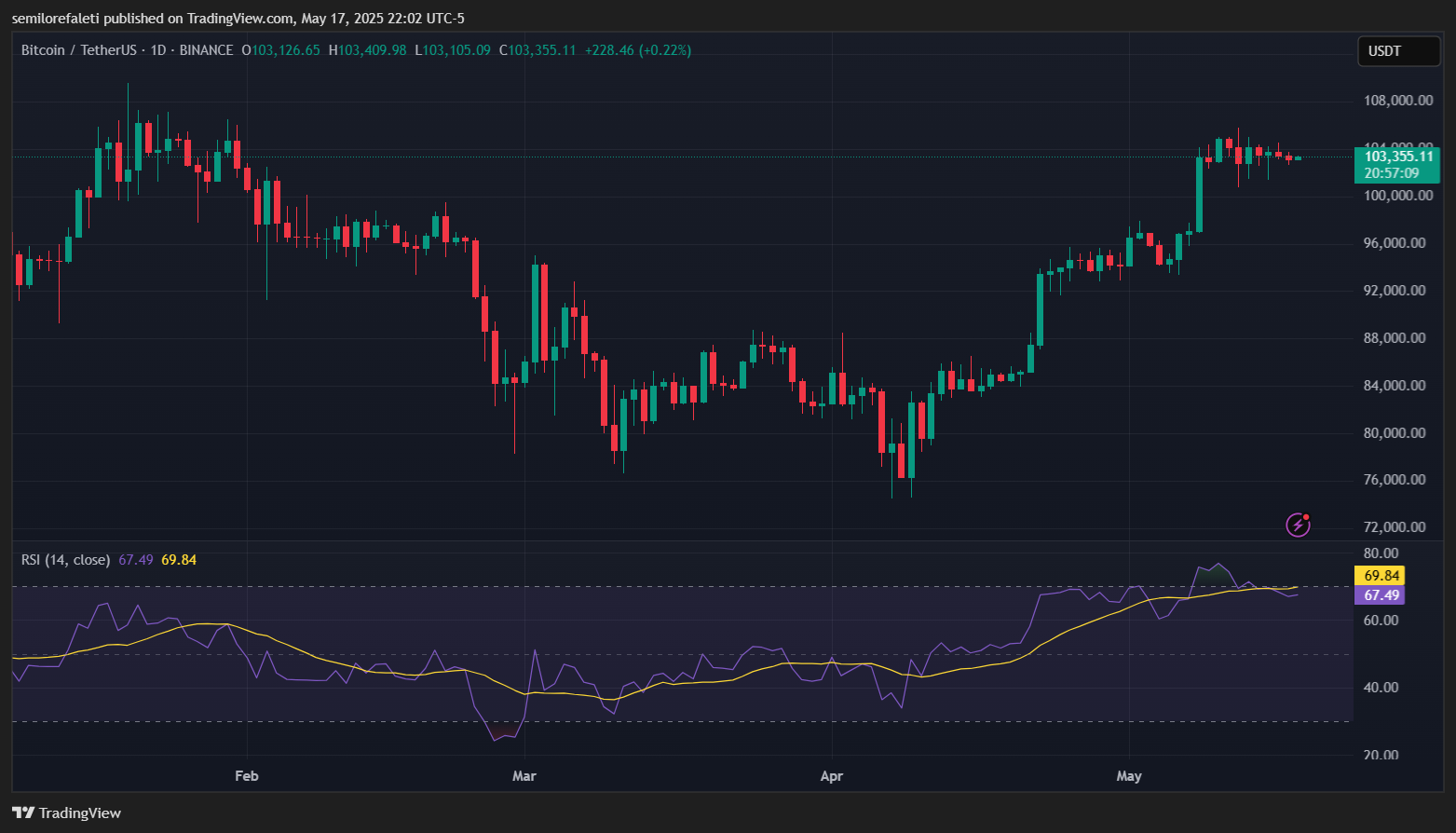 BTC Trading на рівні 103 355 доларів на щоденній діаграмі |Джерело: діаграма BTCUSDT на TradingView.com