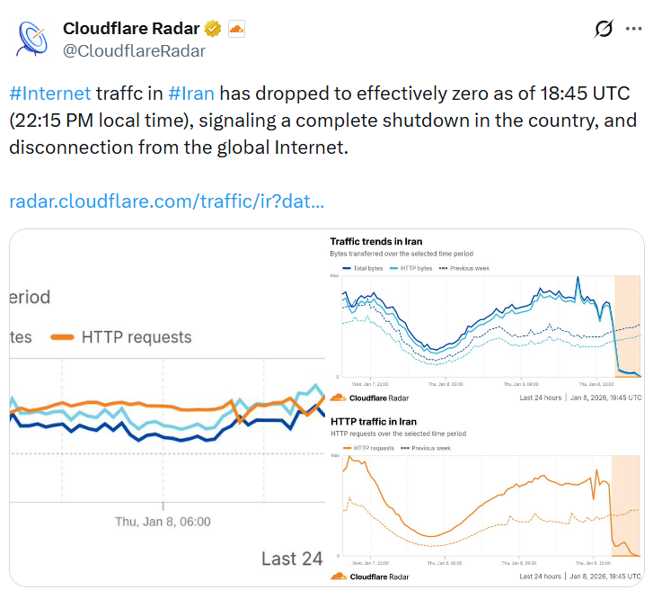 Але доступ до Інтернету в країні було відключено, оскільки почалися протести через погіршення економічної ситуації та після того, як іранський ріал досяг рекордно низького рівня по відношенню до долара США.